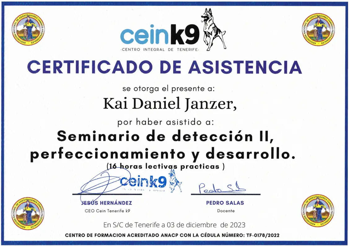 Meine Leidenschaft gilt dem Wohlergehen der Tiere, insbesondere ihrem guten Verhalten. Ich habe eine Ausbildung als Hundetrainer absolviert und mehrere Kurse/Seminare belegt, die mir bei der Ausbildung von Unerzogenen oder Sportlichen Hunden hilfreich sind.